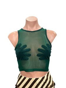 Y2K Neck Scarf Mesh Tank Top - Brown